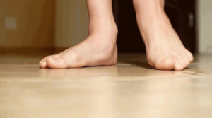 با پای برهنه روی لبه خارجی پا راه بروید، این حرکت باعث تقویت عضلات به داخل چرخاننده پا می شود.